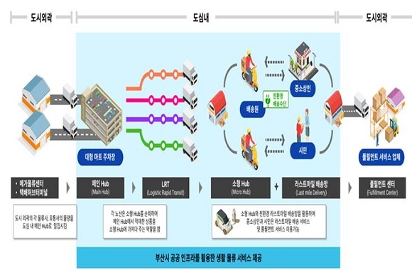 먼저 ‘전기차 활용 도심 생활물류 인프라 사업’은 도심 내 소형 물류허브에서 전기차를 활용한 공동배송 체계를 구축하는 사업이다. 이는 사상구, 부산진구, 연제구, 동래구 4개 구에 충전소와 배송허브 16곳을 구축하고 전기차 80여대를 이용해 도심 내 배송을 하도록 구축하는 사업이다.