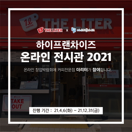 커피 전문점 더리터가 오는 12월 말까지 진행하는 ‘하이프랜차이즈 온라인 브랜드 전시관’에 참여하며 비대면으로 브랜드 창업 정보를 공개하고 있다고 21일 안내했다.
