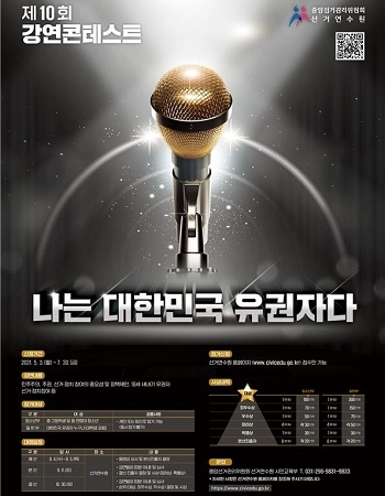 부산시선거관리위원회는 중앙선거관리위원회(중앙선관위) 선거연수원이 오는 8~10월 ‘제10회 강연콘테스트’를 개최한다고 24일 안내했다.