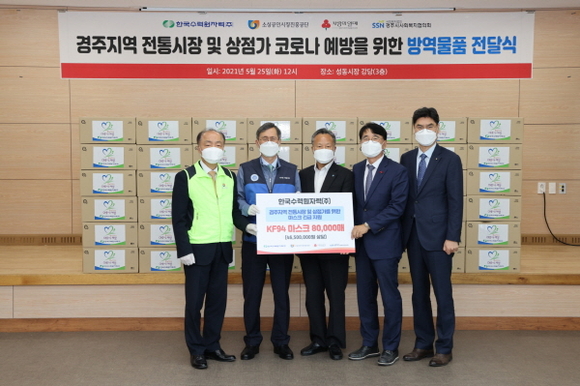 한국수력원자력(이하 한수원)이 25일 경북사회복지공동모금회를 통해 경주시 전통시장·상점가 소상공인을 위한 KF94 마스크 총 8만장을 기부했다.
