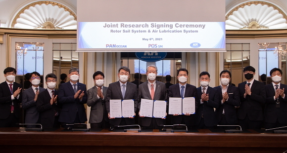 협약에 따라 각 사는 ▲로터 세일 시스템과 공기윤활장치의 효율 도출 기법 정립 ▲실운항 데이터 분석 통한 에너지 저감 장치 효율 검증 등 각종 공동연구를 수행할 예정이다.