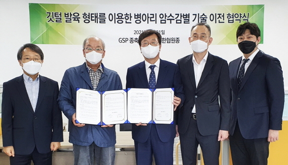경상국립대학교(GNU)는 생명과학대학 동물생명과학과 손시환 교수팀이 ‘깃털 자가 성감별 병아리의 대량 생산 기술’을 개발하고 지난 21일 ㈜한협원종과 기술이전 계약을 체결했다고 밝혔다.