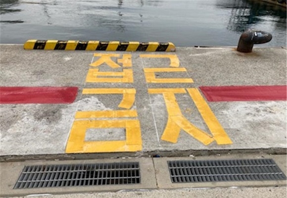 공사는 안벽 끝부분 안쪽에 폭 45㎝의 붉은색 안전선을 1400m가량 표시하고 ‘접근금지’ ‘추락위험’ 경고문구도 고휘도 비드(유리알)를 사용해 야간에도 쉽게 눈에 띄도록 조성했다.