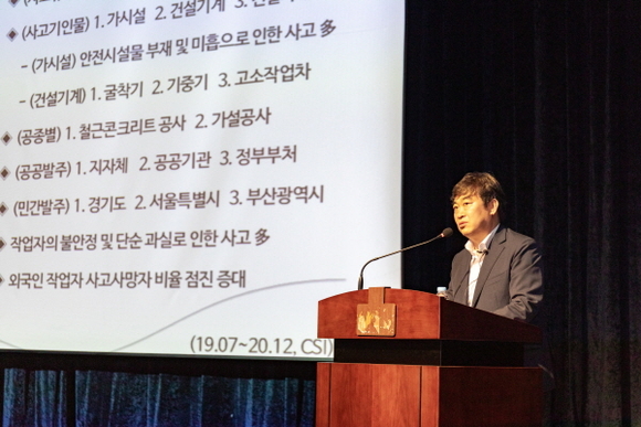 또 “건설안전은 안심사회 실현을 위한 국가와 건설참여자 모두의 책임”이라며 건설안전 정책의 방향을 △예방적 안전관리체계 구축 △건설안전 거버넌스 구축 △데이터 기반의 안전관리 △건설 기술인 관리 강화 △건설 생산 관리 스마트화 등으로 요약해 소개했다.