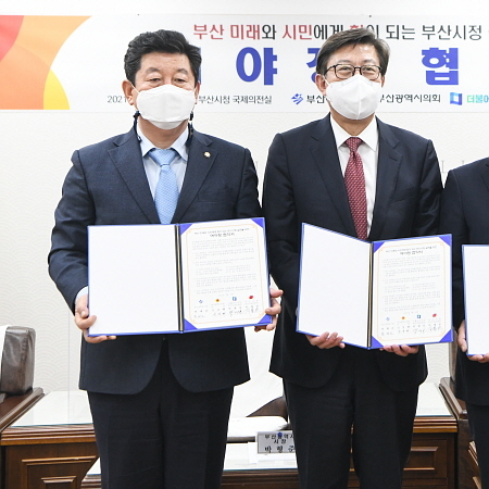 이날 예산정책협의회에는 더불어민주당 지역구 현역 국회의원인 박재호 부산시당위원장과 최인호·전재수 국회의원을 비롯해 각 지역위원장, 신상해 부산시의회 의장, 이동호 부의장, 조철호 원내대표 등이 참석한다.
