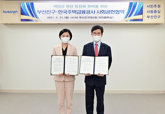 한국주택금융공사(주금공)가 부산진구청과 함께 31일 오후 2시 ‘백양산 등산로 안전·편의시설 정비 위한 사회공헌 협약’을 체결했다고 밝혔다.
