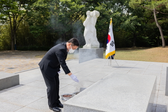권순기 총장은 방명록에 “순국선열과 호국영령의 명복을 빕니다. 대한민국을 대표하는 경남의 국가거점국립대, 경남이 자랑스러워하는 경상국립대학교를 만들어 가겠습니다”라고 적었다.