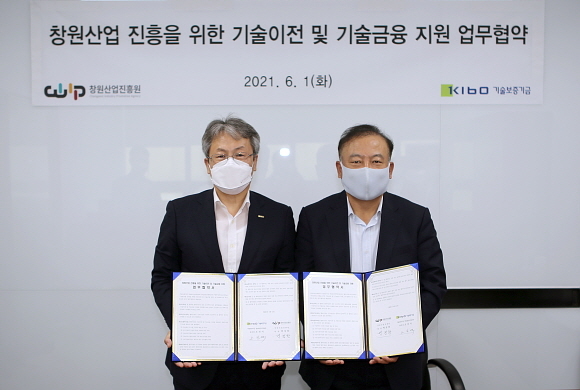 기술보증기금(기보)이 지난 1일 경남도 창원시 성산구에 위치한 기보 경남울산본부에서 창원산업진흥원과 ‘창원지역 산업 진흥 위한 기술이전, 기술금융 지원 협약’을 체결했다고 2일 밝혔다.