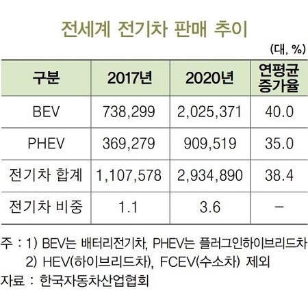 이에 업계에서는 세계 전기차 시장 점유율이 지난해 3.6% 비중에서 오는 2030년에는 32%까지 성장하고 수소차 판매량도 이처럼 지속해서 늘어날 것으로 내다보고 있다.