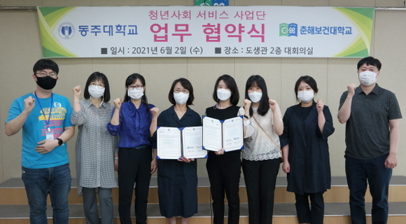 울산청년사회서비스사업단(춘해보건대학교 단장 정영순)은 부산청년사회서비스사업단(동주대학교 단장 신화영)과 2일 오후 2시 춘해보건대 도생관 2층 대회의실에서 MOU를 체결했다.