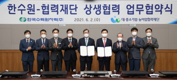한국수력원자력(이하 한수원)이 대·중소기업·농어업협력재단(이하 협력재단)과 2일 경주 한수원 본사 대회의실에서 ‘대·중소기업 및 농어업분야 상생협력을 위한 업무협약’을 체결했다.