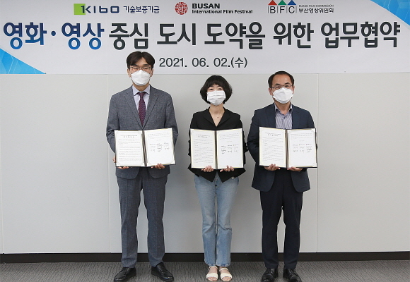 기술보증기금(기금)과 ㈔부산영상위원회, ㈔부산국제영화제가 지난 2일 부산영상위 본사에서 ‘문화콘텐츠 산업 중심 도시 도약 위한 협력’ 협약을 체결했다고 3일 밝혔다.