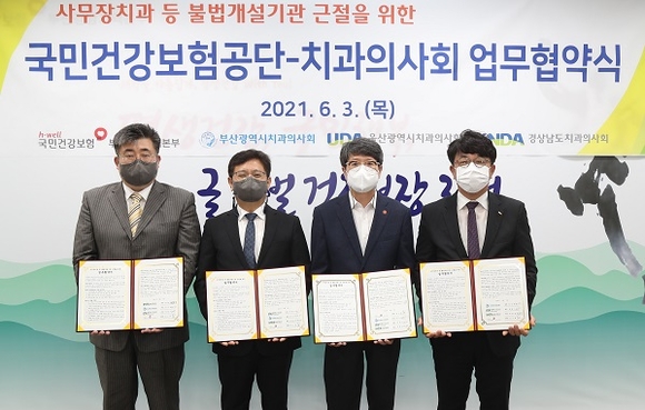국민건강보험공단 부산경남지역본부는 3일 개설자격이 없는 사람이 의료인을 고용해 운영하는 불법개설치과 근절을 위해 부산‧울산‧경남 치과의사회와 업무협약을 체결했다.