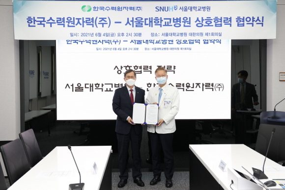 한국수력원자력(이하 한수원)이 4일 서울대학교병원과 ‘방사선의학 공동연구 및 방사성동위원소 활용 치료’ 등의 협력을 위한 양해각서(MOU)를 체결했다.