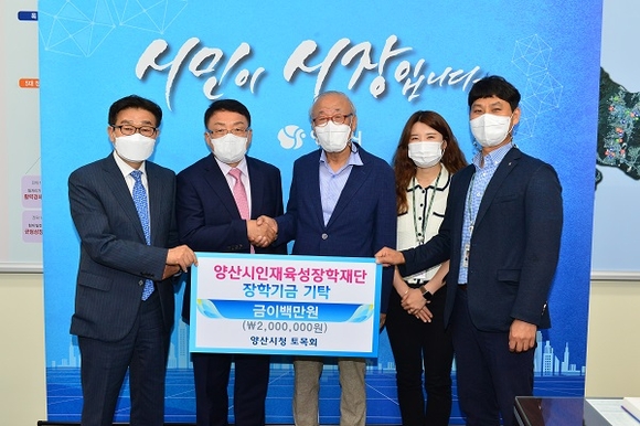 양산시청 토목회가 지난 3일 인재육성을 위해 써 달라며 장학금 200만원을 기탁했다.