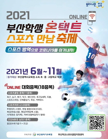 부산시교육청이 오늘(8일)부터 오는 11월 30일까지 부산 소재 모든 초·중·고등학교를 대상으로 ‘2021 부산 학생 온택트 스포츠 만남 축제’를 개최한다고 밝혔다.