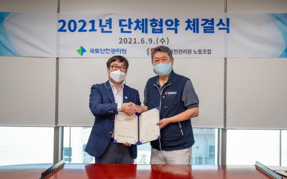이는 지난해 12월 10일 한국시설안전공단과 한국건설관리공사 간 통합을 통해 국토안전관리원이 출범한 후 첫 단체협약이다.