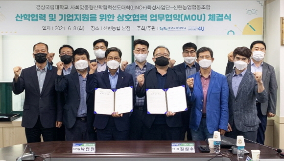 경상국립대학교(GNU) 링크플러스(LINC+)사업단은 지난 8일 신현농협 회의실에서 신현농협과 산학협력 및 기업지원을 위한 업무협약을 체결했다.