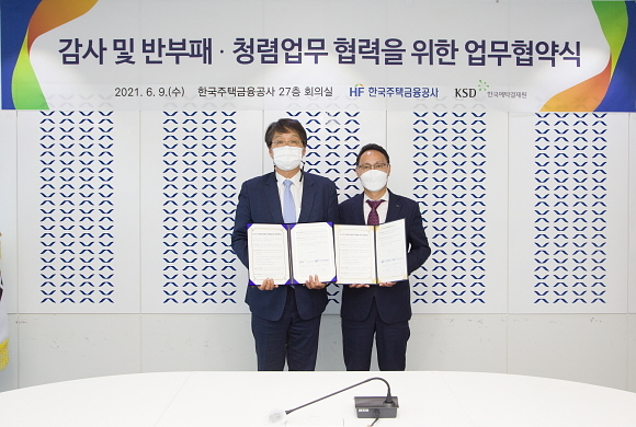한국주택금융공사(주금공)와 한국예탁결제원이 ‘감사, 반부패, 청렴 업무 상호 협력’ 협약을 체결했다고 9일 밝혔다.