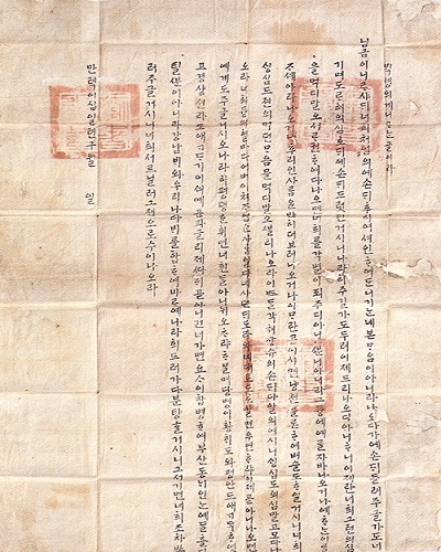 경남 김해시는 임진왜란 당시 백성들이 널리 읽을 수 있도록 순 한글로 작성한 최초 공문서인 '선조국문유서(보물 제951호)'가 김해로 돌아와 7월 개관하는 김해한글박물관에서 일반에 공개한다고 14일 밝혔다.