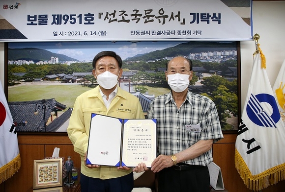 귀중한 문화재가 제자리를 찾지 못해 안타깝게 여겼던 허성곤 김해시장은 '선조국문유서'가 김해로 돌아올 수 있도록 문중과 지속적인 논의와 다양한 노력을 기울인 끝에 안동권씨 종친회에서 '선조국문유서'를 김해시로 기탁하기로 결정해 이날 김해시청에서 기탁식을 가졌다.