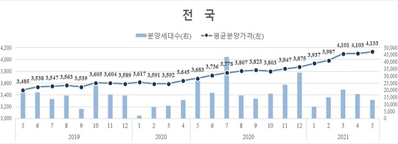주택도시보증공사(HUG)는 전국 민간아파트의 분양보증사업장 정보를 집계, 분석한 ‘2021년도 5월 말 기준 민간아파트 분양가격 동향’ 조사 결과를 15일 발표했다.