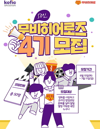 영진위 관계자는 “무비 히어로즈 4기를 통해 영화는 ‘당연히 결제하고 이용하는 창작물’이란 인식이 사회 전반에 확산하길 바란다”며 “영화에 대한 관심과 열정이 있는 분들의 많은 참여를 바란다”고 전했다.