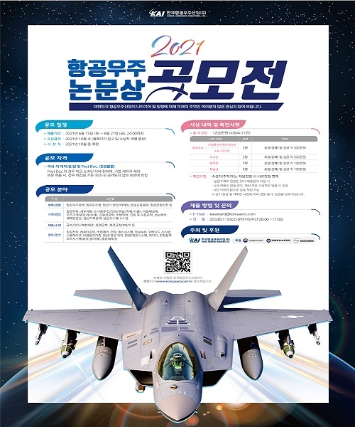 한국항공우주산업(KAI)이 '2021년 항공우주논문상 공모전'을 개최한다. 참가 접수는 8월 27일까지다.