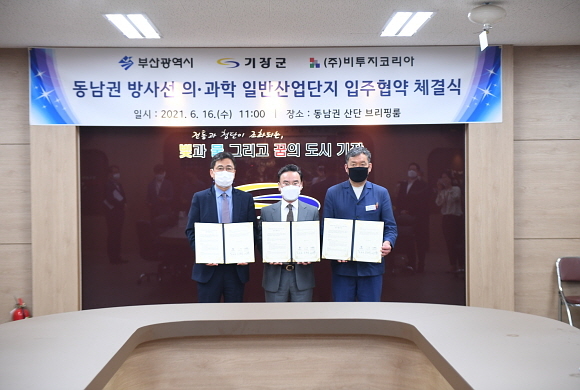 부산 기장군은 16일 오전 11시 동남권 방사선 의·과학 일반산업단지(산단) 현장 브리핑실에서 파워반도체 전문 기업인 ㈜비투지코리아와 ‘동남권 산단 입주협약’을 체결했다고 밝혔다.