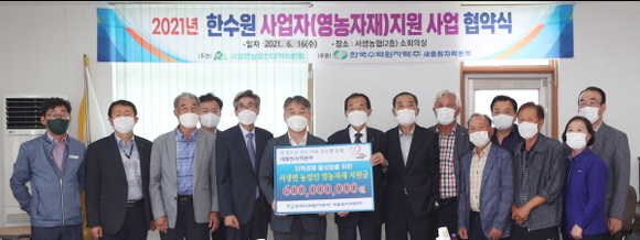 한국수력원자력 새울원자력본부는 16일 서생농협 본점에서 서생면 농업인대책위원회에 6억원 상당의 영농자재 구입비를 지원하는 협약을 체결했다.