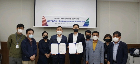 울산시설공단 울산하늘공원은 지난 16일 지역 상생 발전을 도모하고 건전한 장례문화를 선도하기 위한 업무협약을 지역 내 개장유골 업체(특수여객 조합)와 체결했다.