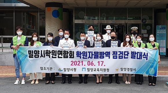 경남 밀양시는 코로나19 확산 방지를 위해 17일 밀양시립도서관에서 밀양시학원연합회, 밀양교육지원청, 밀양경찰서와 함께 '밀양시 학원 자율방역단'을 출범했다.