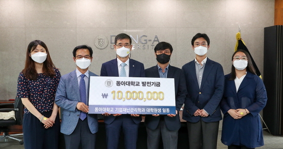 동아대학교는 기업재난관리학과 대학원생 26명이 학과 발전기금 1000만원을 기부했다고 18일 밝혔다.
