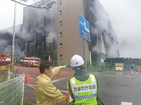 국토안전관리원은 박영수 원장이 18일 오전 경기도 이천 쿠팡 물류센터 화재현장을 방문해 건물 구조체 안전상태를 점검했다고 밝혔다.