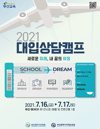 부산시교육청이 내달 16일 오후 2시 벡스코에서 ‘새로운 미래, 내 꿈의 여정’이란 슬로건으로 ‘2021 대입 상담캠프’ 개막식을 열고 이틀간 행사를 진행한다고 21일 사전 공고했다.