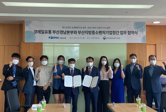 부산지방중소벤처기업청(부산중기청)과 코레일 유통 부산경남지역본부가 지난 21일 ‘부산지역 소상공인의 판로 개척을 위한 협약’을 맺고 함께 노력하기로 했다고 22일 밝혔다.