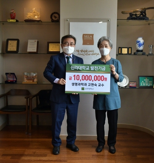 신라대학교는 생명과학과 고현숙 교수가 대학발전기금 1000만원을 기탁했다고 22일 밝혔다.