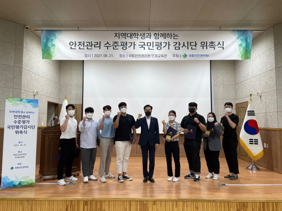 지난 21일 관리원 인재교육관에서 위촉식을 갖고 출범한 국민평가감시단은 경상국립대학교의 건축학과 및 토목공학과 재학생 총 8명으로 구성됐으며, 안전관리 수준평가의 일부인 현장평가를 참관해 공정한 평가를 위한 감시활동을 벌이게 된다.
