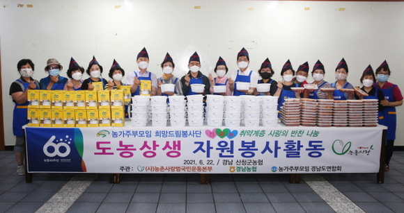 경남농협은 농가주부모임 경남도연합회, 농협 산청군지부, 농촌사랑범국민운동본부와 22일 산청군농협에서 20여 명이 참여한 가운데 ‘찬찬찬 사랑의 밑반찬 나눔 행사’를 가졌다.