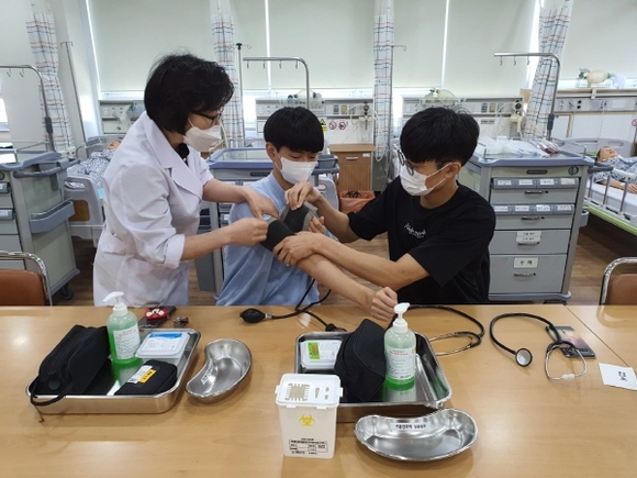 이들은 간호학과 기본간호학 실습실에서 혈압 측정을 통해 정상혈압과 고혈압에 대해 배웠다. 시뮬레이션 실습실에서는 SimMan 3G를 통한 시뮬레이션 실습, 격리복, 멸균장갑, face shield 착용하기, Scrub gown 착용 후 역할경험 등 간호대학생들에게 필요한 내용을 직접 경험해 보며 학습했다.