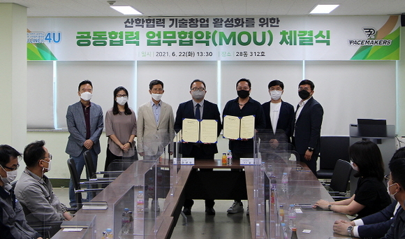 경상국립대학교(GNU) 링크플러스(LINC+)사업단은 22일 오후 BNIT R&D센터 세미나실에서 ㈜페이스메이커스와 산학협력 및 기술 창업지원을 위한 상호협력에 관한 업무협약을 체결했다.