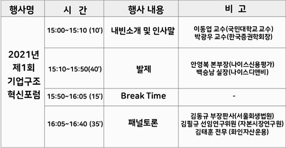 이어 서울회생법원 김동규 부장판사, 자본시장연구원 김필규 선임연구위원, 화인자산운용 김태훈 전무 등이 패널로 나서 토론을 진행한다.