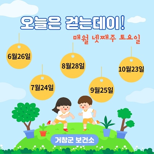 경남 거창군은 코로나19 장기화로 제한된 일상 속에 혼자서도 실천 가능한 걷기 운동을 독려하기 위해 매월 넷째 주 토요일을 '걷는 데이(day)'로 지정해 캠페인을 운영한다고 23일 밝혔다.