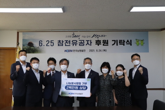 한국남동발전 감사실은 24일 경남서부보훈지청을 방문해 코로나19로 생계가 곤란한 6.25참전유공자 및 가족 생계지원을 위한 지역생산 농산물 기탁식을 가졌다.