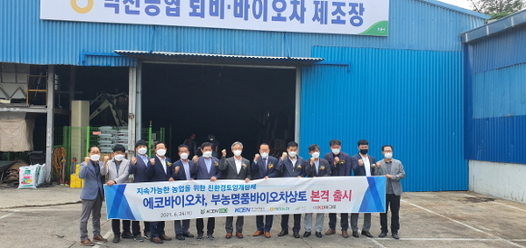 남동발전은 24일 경북 성주군 벽진농협 유기비료제조공장에서 부농, 케이디아그로 및 강원도농업기술원 관계자들이 참석한 가운데, 목재펠릿 연소재를 활용한 친환경토양개량제품 출시 기념식을 가졌다.