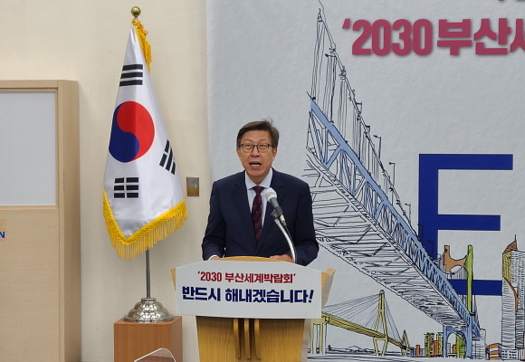 박형준 부산시장이 지난 21~24일까지 나흘간 ‘2030 월드엑스포’ 공식 유치신청서 제출 등을 위한 프랑스 파리 방문 일정을 마치고 28일 오전 11시 시청에서 성과 발표 기자회견을 열었다.