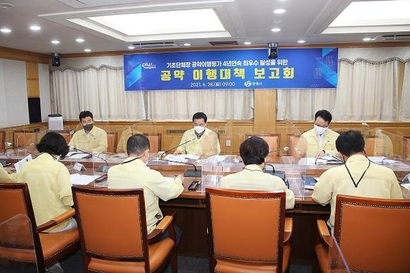 시는 28일 오전 시정회의실에서 '2021년 상반기 공약 이행대책보고회'를 개최했다.