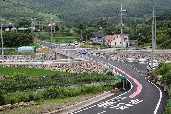 또 교량 높이를 기존 도로보다 높인 것은 물론 비포장 상태였던 접속도로도 아스팔트 포장과 함께 차선을 그려 마무리했다.
