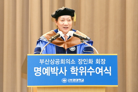 국립부경대학교는 29일 부산상공회의소(이하 부산상의) 장인화 회장(58)에게 명예경영학사 학위를 수여했다고 밝혔다.