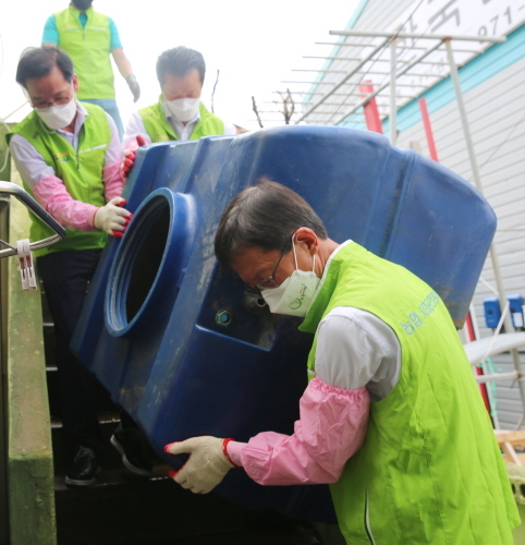 윤해진 경남농협 본부장, 최성환 부경원예농협 중앙회이사 조합장, 박삼재 농협김해시지부장 등 농협 임직원 10여 명이 ‘NH농촌현장봉사단’을 구성했다. 지난해 연이은 태풍으로 붕괴 위험이 있는 물탱크를 철거하는 등 노후 주거환경 개선을 위해 구슬땀을 흘렀다.